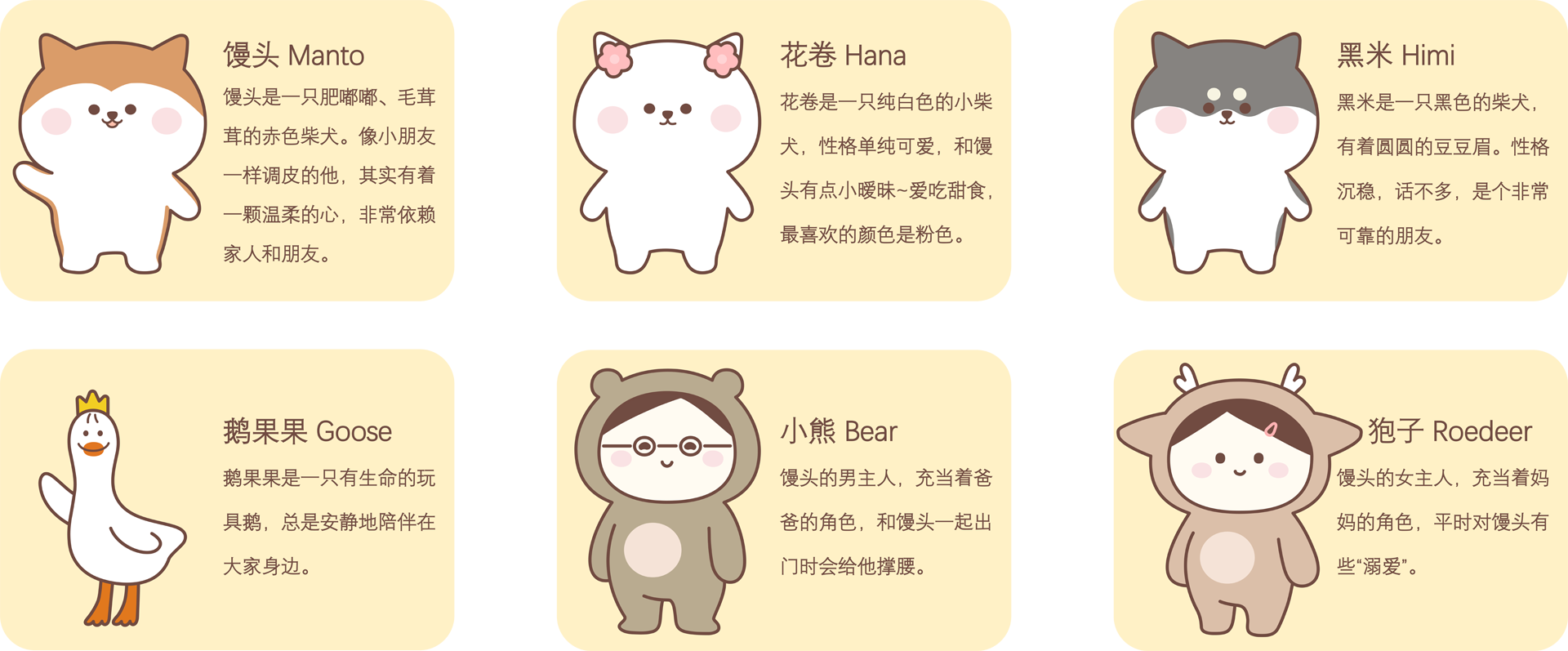 艾格尼斯曾说:“狗的寿命太短,这真的是它们唯一的缺点。”为了记录下和小狗在一起注定短暂却无比美好的时光,柴犬馒头的卡通形象诞生了。漫画世界里的馒头和他的原型一样调皮可爱,像个小朋友一般,始终对世界充满善意与好奇,有着爱他的家人和朋友们。